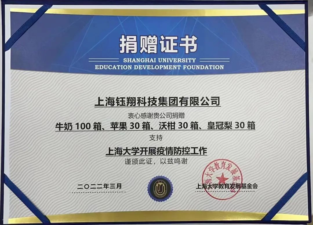 在得知上海大學(xué)封閉管理后,3月10日上午,“兩新”組織鈺翔集團(tuán)黨總支組織安排支援上海大學(xué)疫情防控工作,及時(shí)為上海大學(xué)師生捐贈(zèng)90箱水果、100箱牛奶等物資。